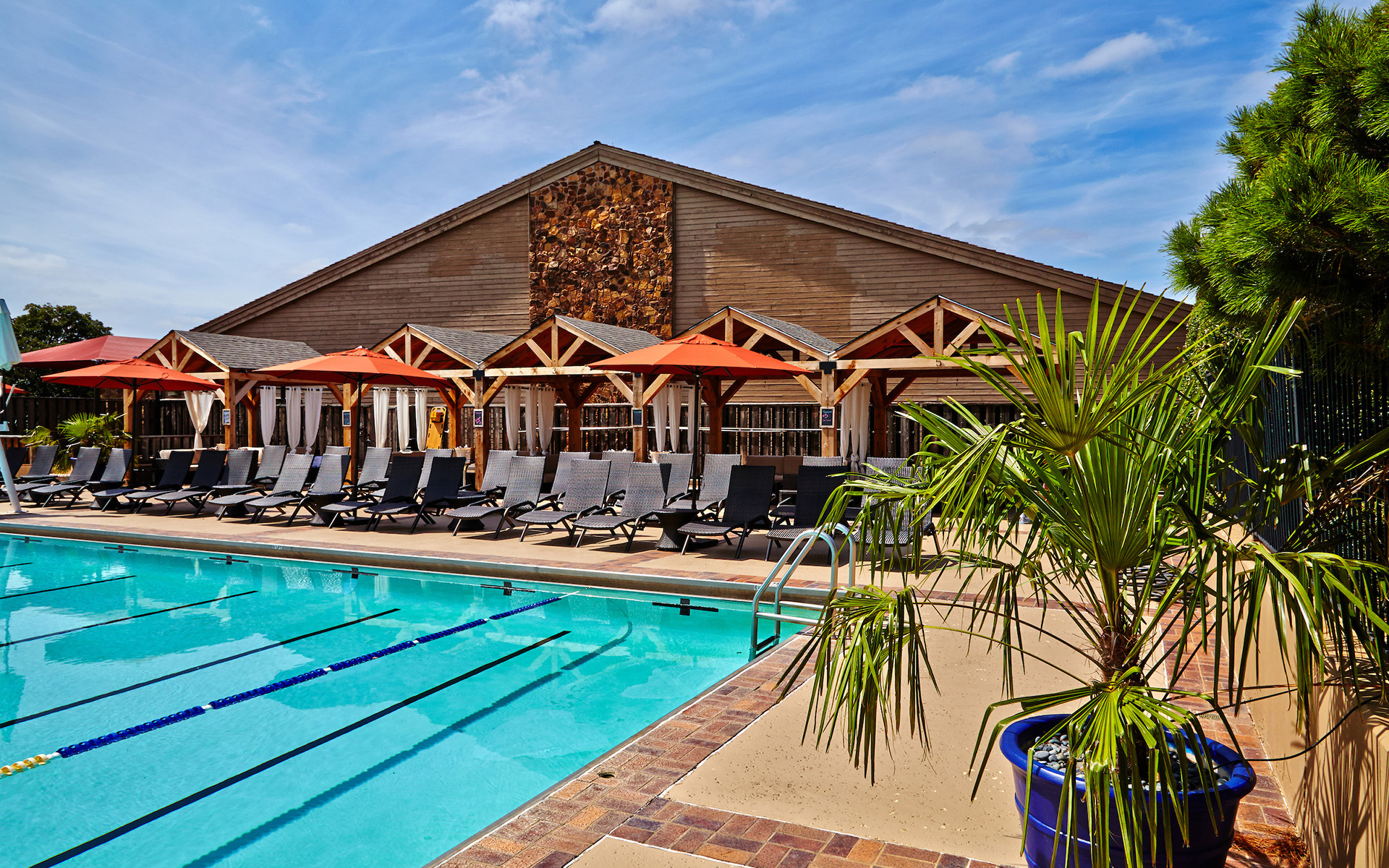Oak Tree's Olympic-sized swimming pool is fit for the whole family, no matter the kind of water relaxation you're looking for. With a diving board, a splash pad and certified lifeguards always on duty, a relaxing dip couldn't be easier. Need a break for a bite to eat? Our poolside café offers a grill menu and poolside service, not to mention a game room. It also features a full bar so Members can grab a drink while relaxing by the pool with friends or that golf opponent you just beat by one stroke.